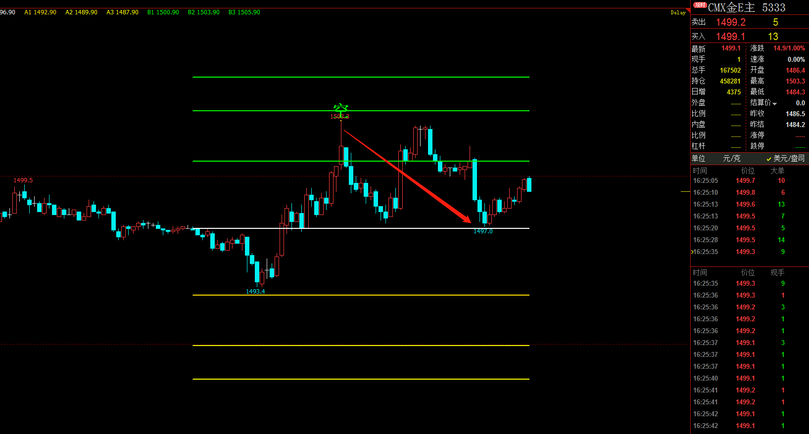 [backcolor=rgba(255, 255, 255, 0.7)]交易黄金品种也是一样,系统提示空单开仓信号,建仓点位1502.4,空单一手,平仓止盈4美金。依然如此简单,准确,智能!
