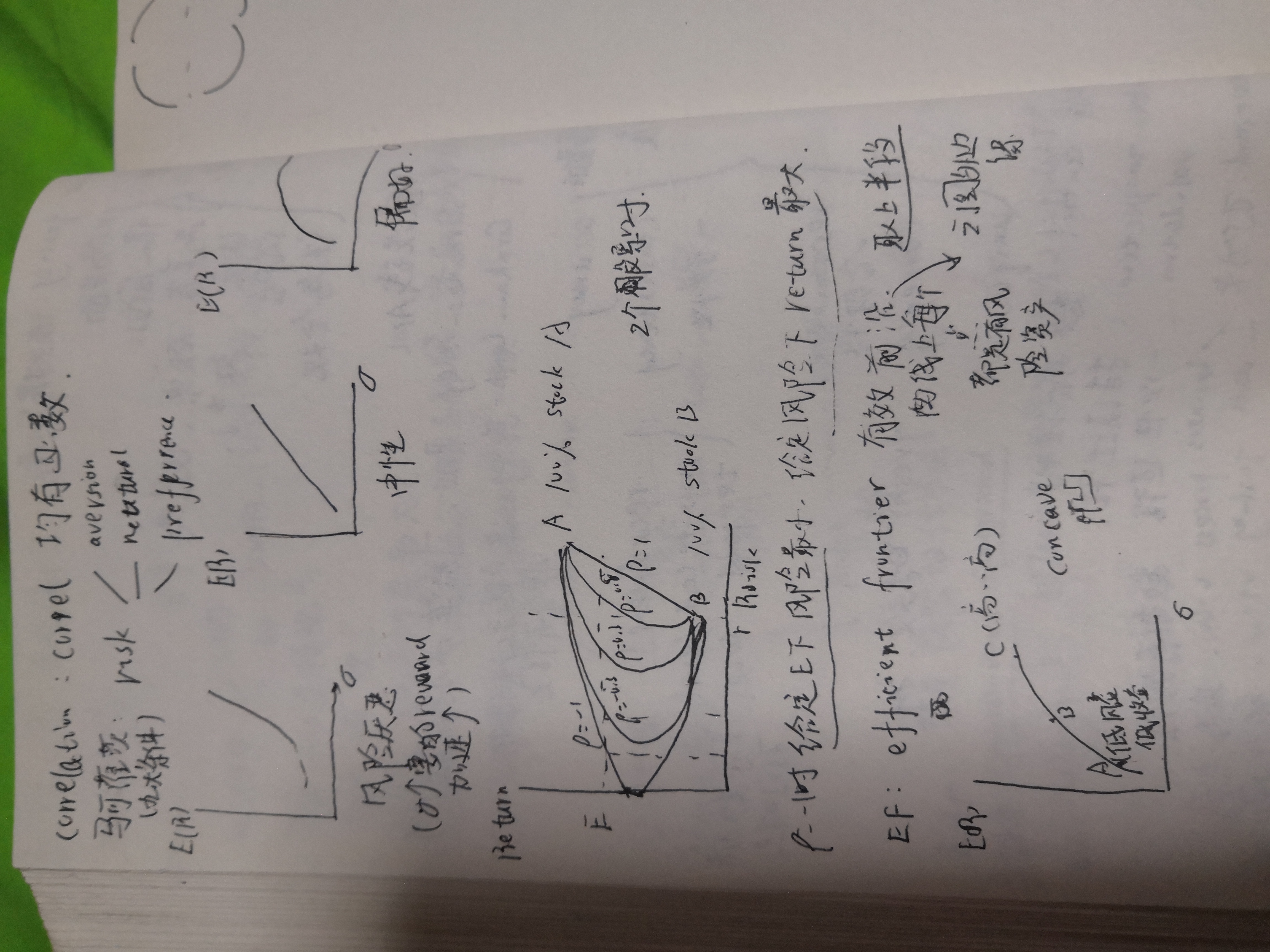 所有含风险资产组合的点构成云图,外延上半的concave部分构成有效前沿EF。跟着推导过程走一遍应该是不会再忘了