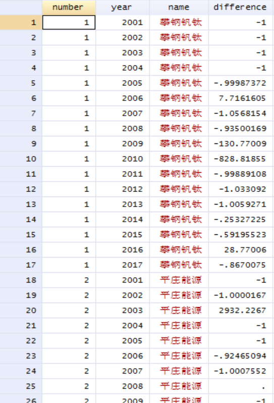 具体如下:这个面板数据有3000多家公司2001-2017年的数据,现在我想把每家公司的difference按照区间(0,0.25)(0.25,0.5)(0.5,0.75)(0.75,1)(1,正无穷),负数值也以此类推,这样0.25的区间长度来统计每家公司落入不同区间的个数有多少。求问能否用stata实现?!十分感谢了!!!