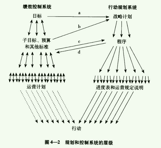 规划和控制系统有两种。其中一种着重于对总体绩效的调节,另一种力求规定特定的活动。前者,重在对产出进行事后监督,我们也可称其为“绩效控制”;而后者,则旨在规定将来的活动,可称为“行动计划”。