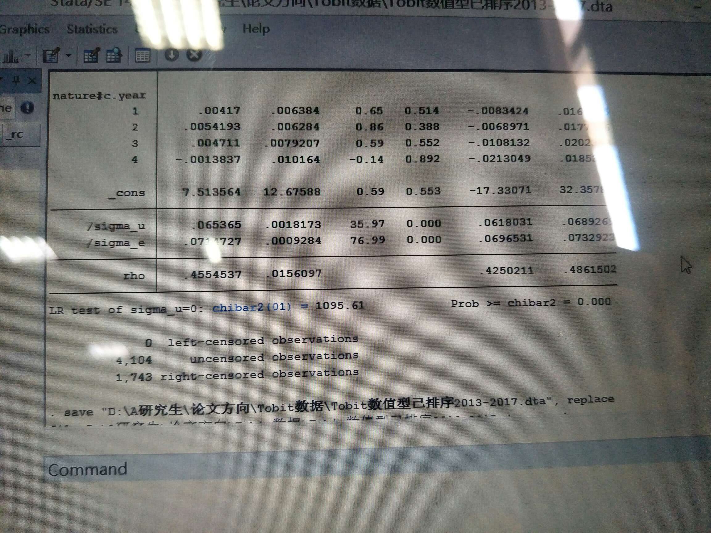 因为被解释变量是0-1,所以选择了左右删失的情况,命令如下<br>