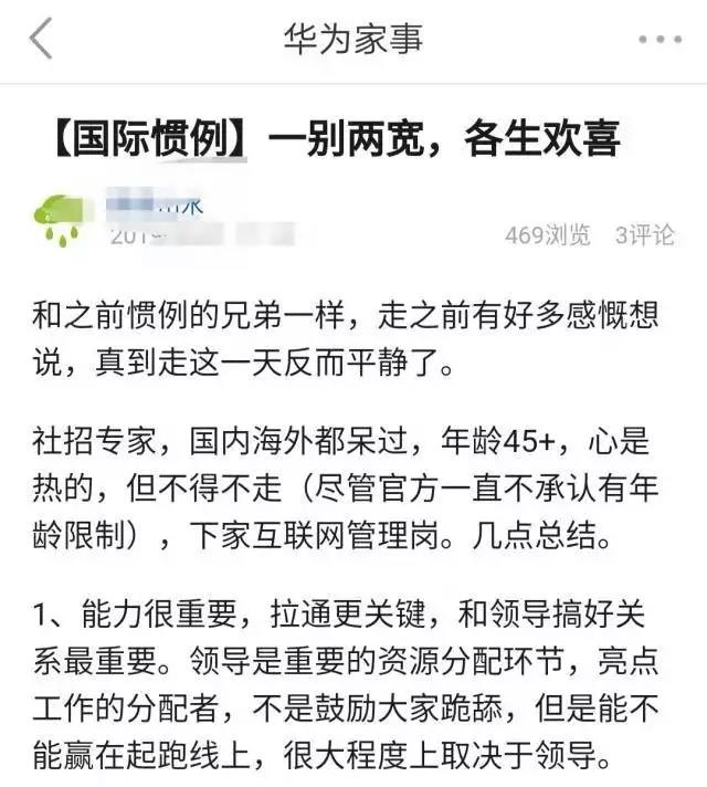 就像《裁员传闻中的华为》一文中说:“在裁员风波中,临危不乱的是那些清醒对待了企业和个人关系而不是幻想把企业当作永久靠山的人。”