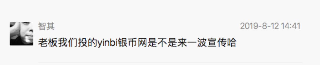 8 月 12 日下午,面对一则关于「银币网」的快讯、及正在宣传银币网的韩智其, 区块链行业投资人、数字启蒙资本合伙人曹寅直接指出来了这一句。
