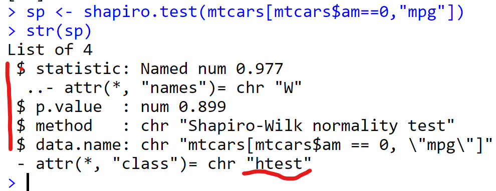 shapiro.test 返回的是 htest , 有4个内容,取了第一个显示,要显示p值,应该这样写