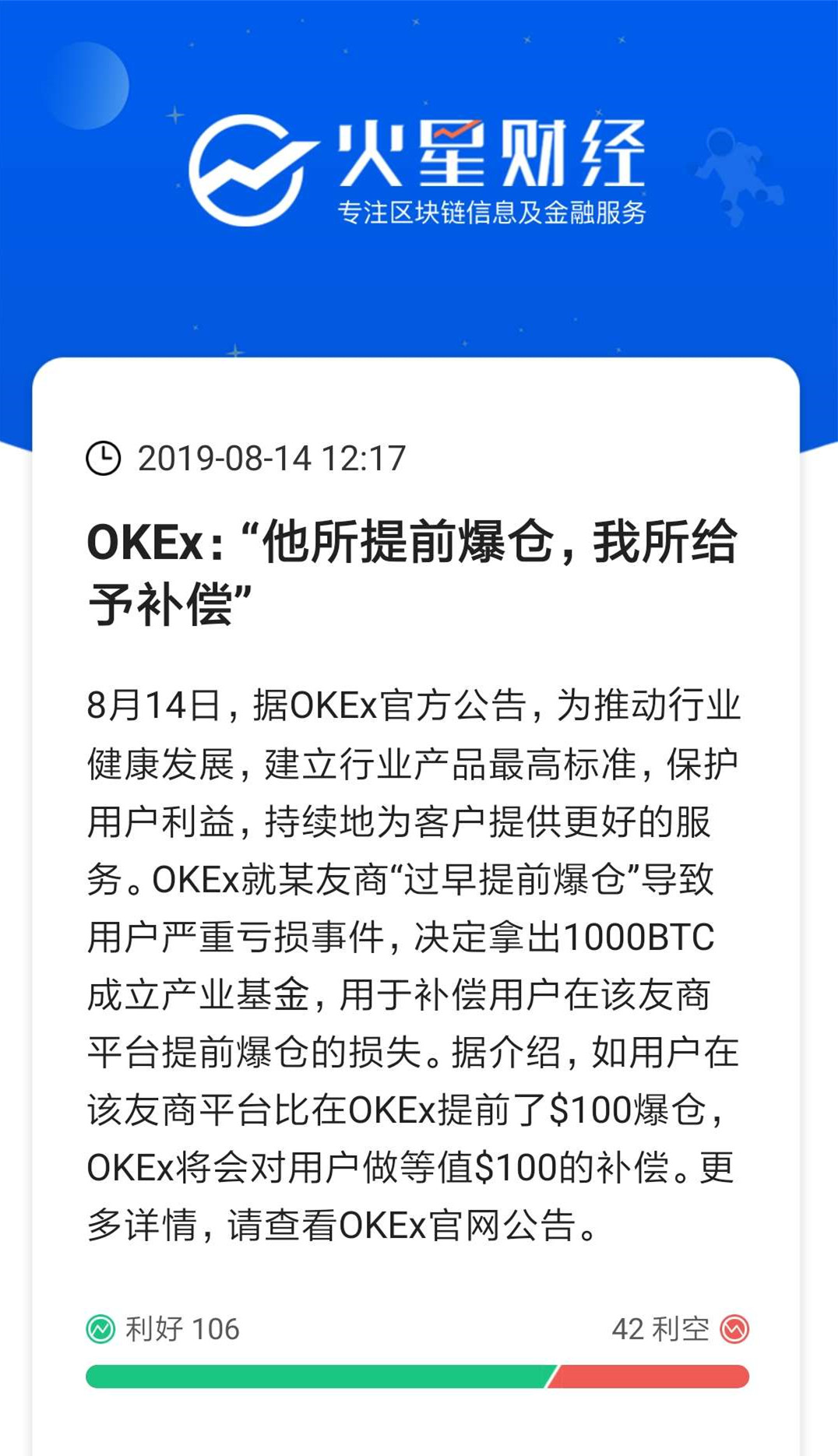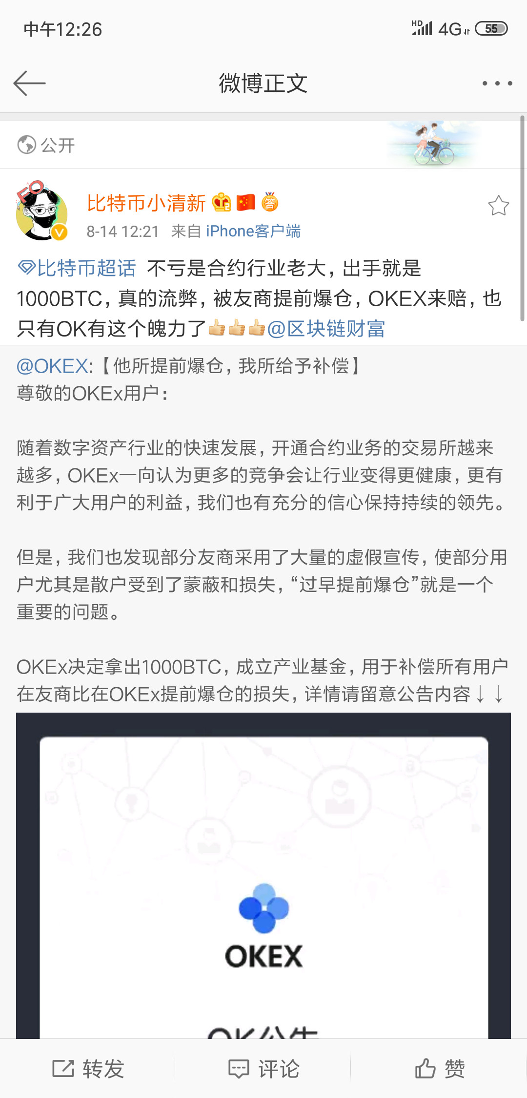 今天看到一个公告:ok说友商提前爆仓,ok补偿!这也太OK了吧~