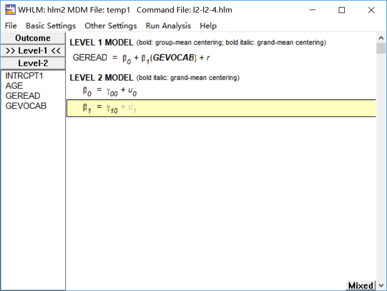 Fixed effects: geread ~ 1