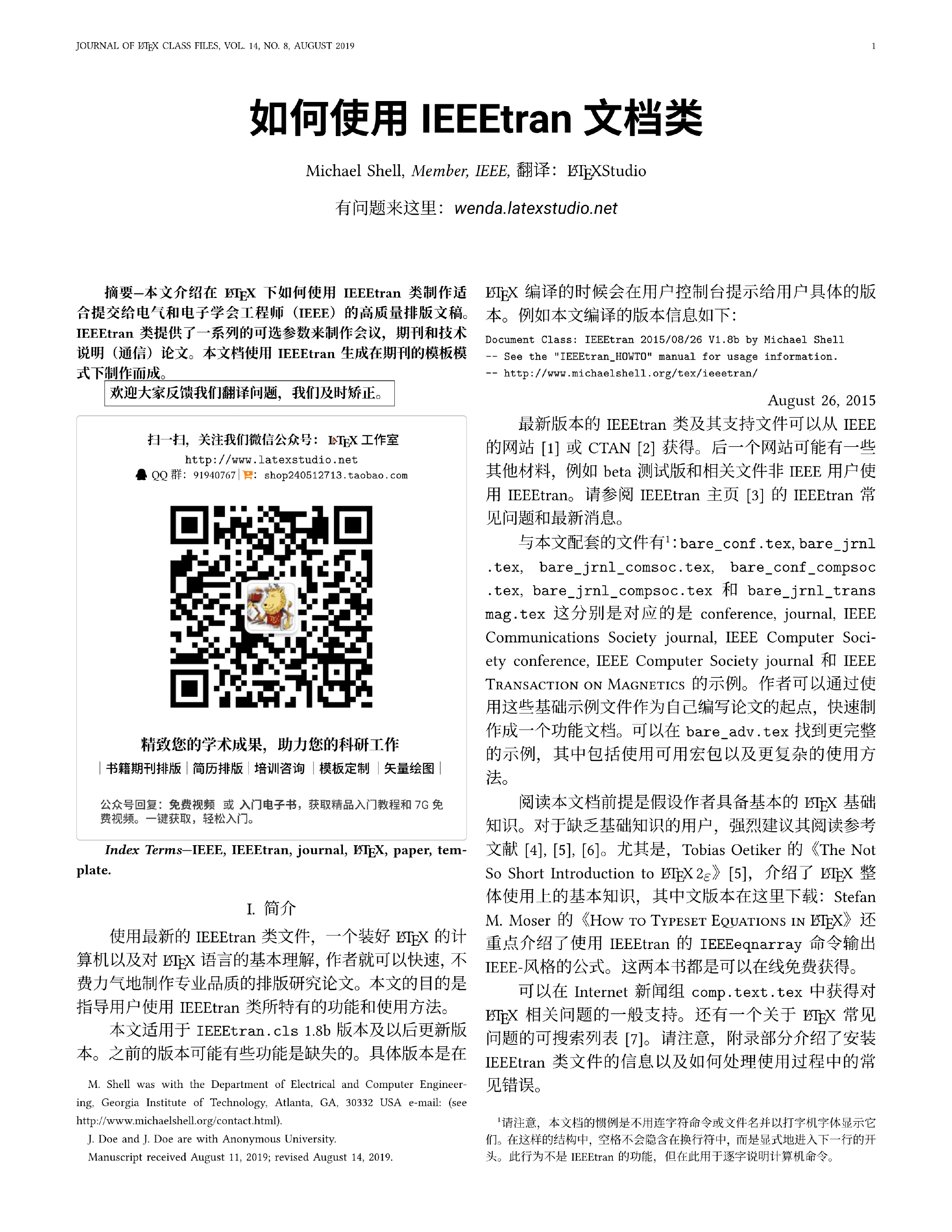 本文介绍在LaTeX{}下如何使用IEEEtran类制作适合提交给电气和电子学会工程师(IEEE)的高质量排版文稿。 IEEEtran类提供了一系列的可选参数来制作会议,期刊和技术说明(通信)论文。 本文档使用IEEEtran生成在期刊的模板模式下制作而成。其官网模板到这里下载即可:https://www.ieee.org/conferences/publishing/templates.html