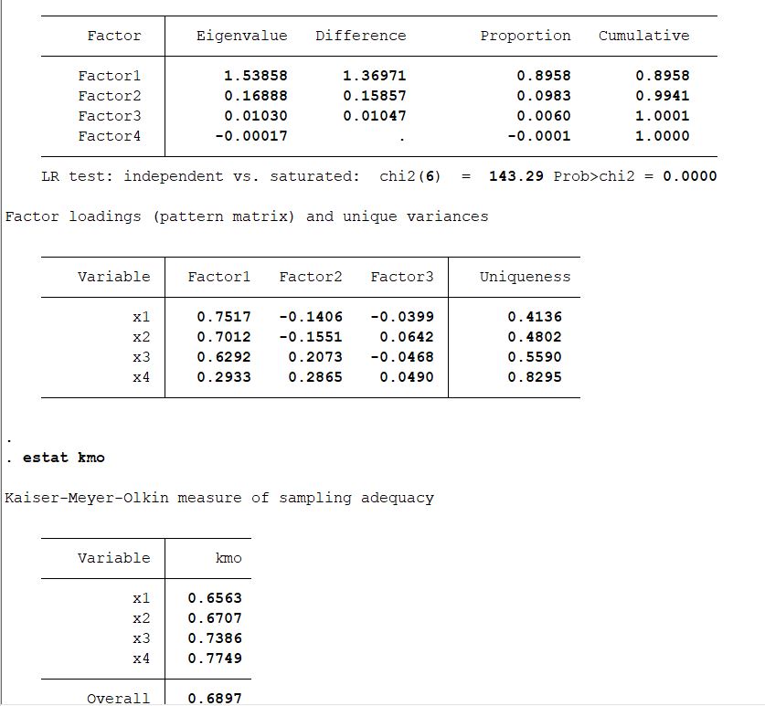 在做多元回归分析之前,先对4个变量x1,x2,x3和x4做了迭代因子分析,如图1所示
