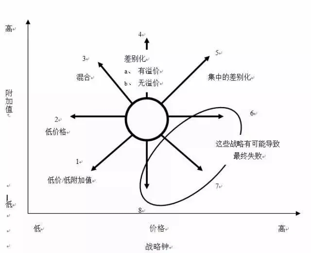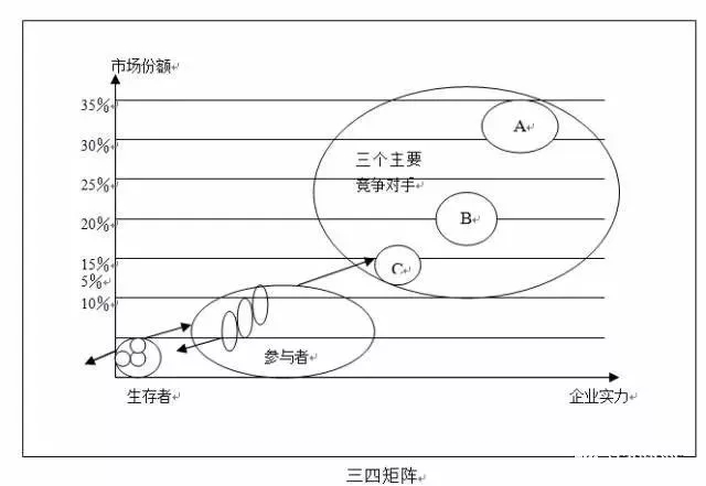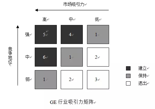当向量出现在竞争象限时,表明企业应该采取竞争性战略,包括后向一体化、前向一体化、市场渗透、市场开发、产品开发及组建合资企业等。