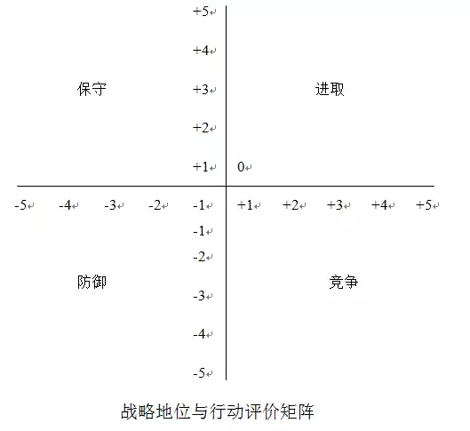 向量出现在SPACE矩阵的进取象限时,说明该企业正处于一种绝佳的地位,即可以利用自己的内部优势和外部机会选择自己的战略模式,如市场渗透、市场开发、产品开发、后向一体化、前向一体化、横向一体化、混合式多元化经营等。