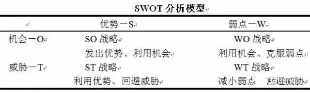 “SWOT”是Strength、Weakness、Opportunity、Threat四个英文单词的缩写,这个模型主要是通过分析企业内部和外部存在的优势和劣势、机会和挑战来概括企业内外部研究结果的一种方法。