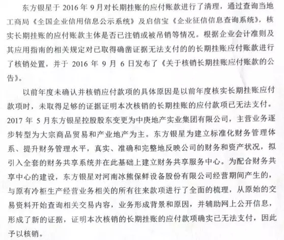 案例三:河南东方银星投资股份有限公司核销应付账款1028.39万元。
