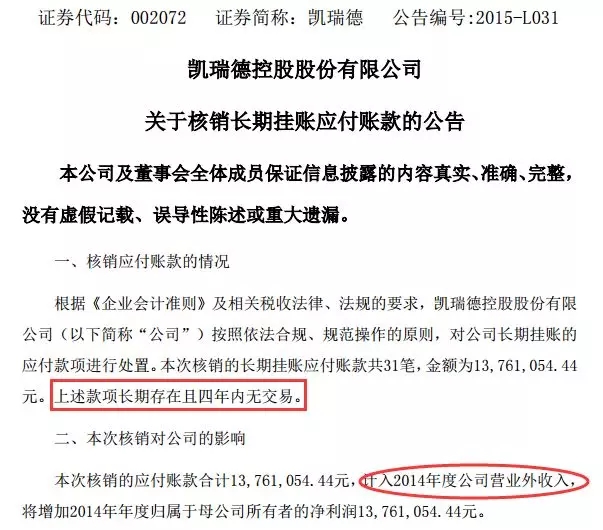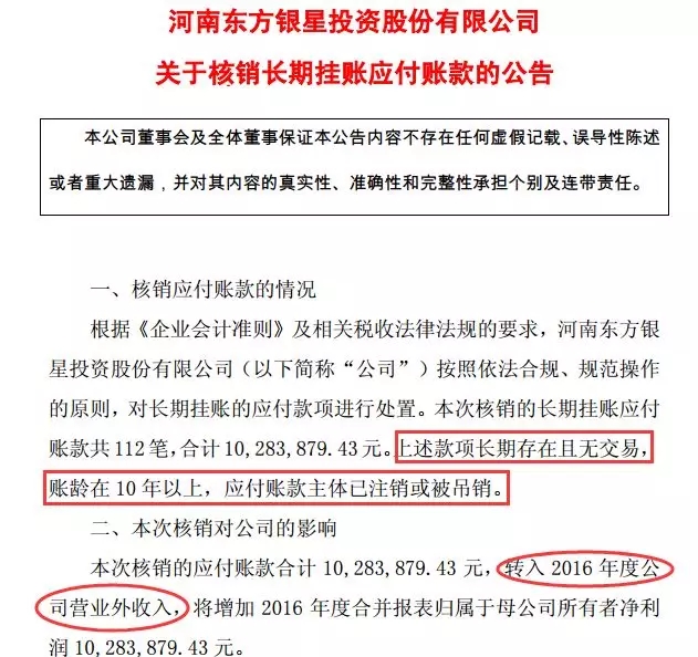 下面,我们来看一看上市公司核销长期挂账的应付账款案例。