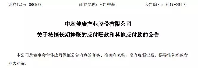 案例七:中基健康产业股份有限公司核销应付账款和其他应付款1268.45万元