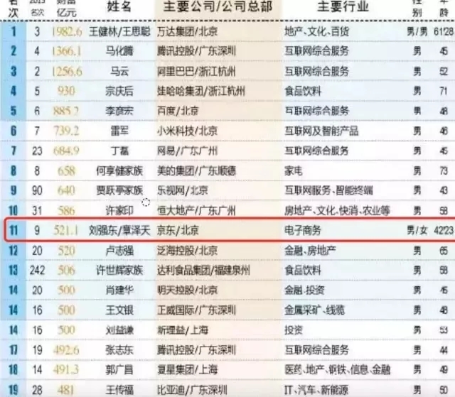 在“新财富500中国富人榜“上,她与刘强东排第11位,财富达到了521.1亿元。