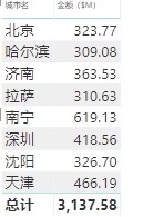【学习笔记】按产品类型维度下筛选城市的金额合计,没有大于300的值,最大值为 ...