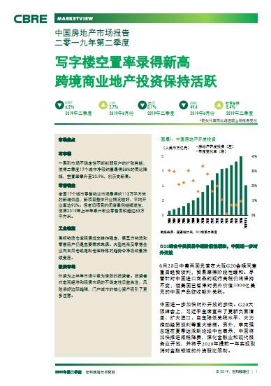 世邦魏理仕-写字楼空置率录得新高:2019Q2中国房地产市场报告-201908-40页.pdf