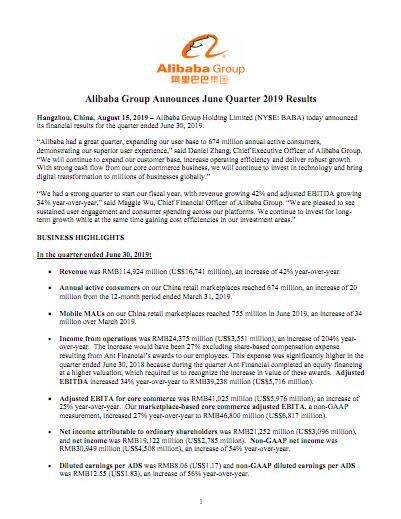 阿里巴巴-2020财年第一季度阿里巴巴财报(英文)-201908-30页.pdf