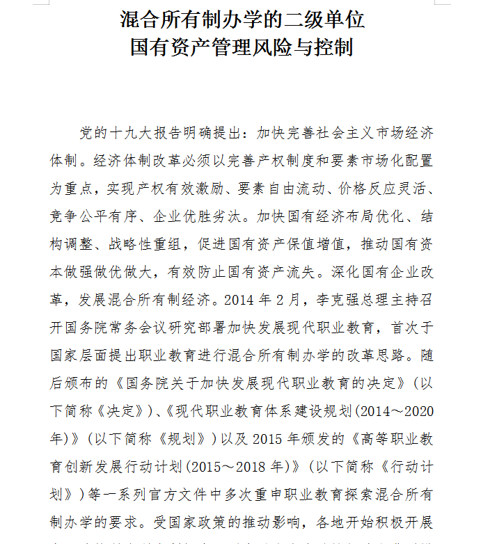 混合所有制办学的二级单位 国有资产管理风险与控制