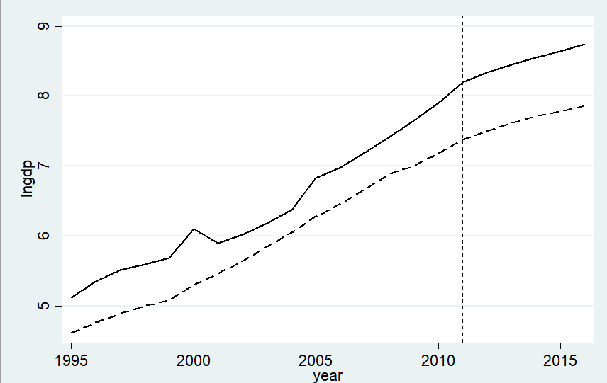关于合成控制法的问题,两条线完全平行且相距很远,是变量选错了吗