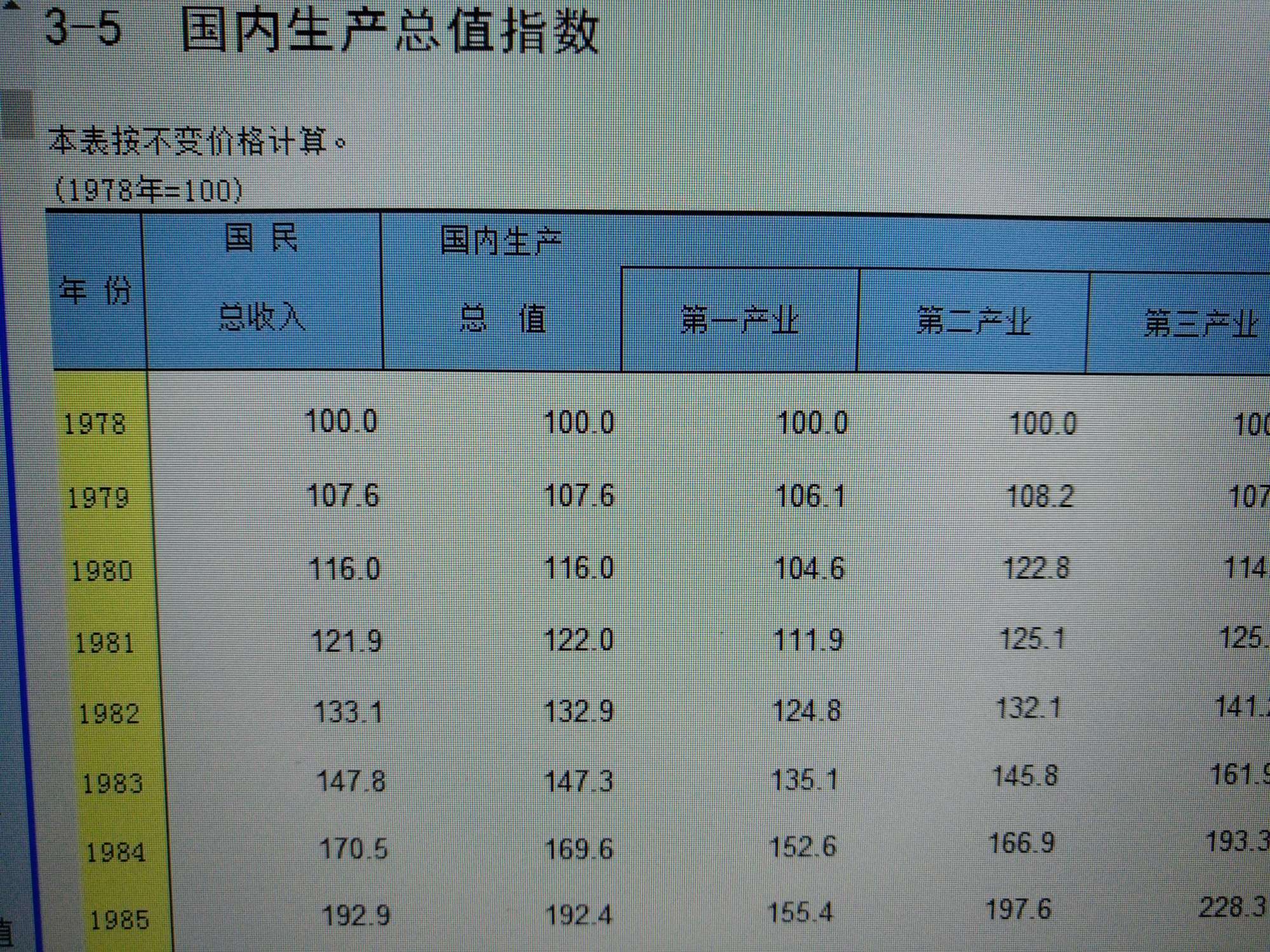 在《中国统计年鉴》中,有当年价格的GDP,也有不变价格的GDP;但是其不变价格统计表按照五年或十年的标准分为了若干段,使用不便;因此有时需要将各个年份的GDP以某一统一年份的不变价格表示,这时就要用到GDP指数<br>