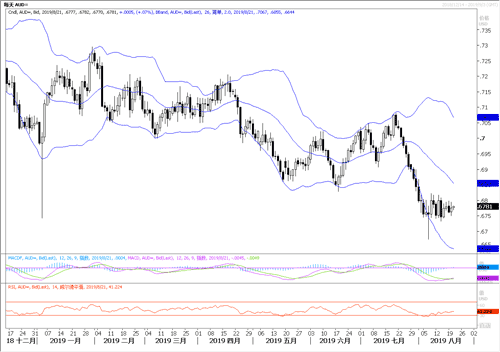 澳元兑美元在周二亚洲时段一度反弹,但是在0.68关口遭遇阻力,进入欧洲时段后回吐了此前部分涨幅,总体上汇价依旧延续了此前两周以来的横盘走势。推动澳元走强的动力在于日内早间发布的澳洲联储会议纪要似乎降温了此后澳洲联储进一步降息的预期,然而,这却敌不过全球风险情绪在日内稍后的再度升温。欧洲方面英国和意大利的政局不稳前景,连同国际贸易环境的顾虑犹存,都带动风险偏好情绪恶化,令澳元等商品系货币承压,美元指数的持续强劲也对此推波助澜。而此后,澳元兑美元的走势仍将取决于美联储与澳洲联储之间的政策落差,因此本周美联储主席鲍威尔在全球央行年会的主题讲话将至关重要,澳元兑美元汇价选择方向冲破当前的盘整区间,可能也将在此一举。因此,澳元兑美元的走势短期内仍是窄幅横盘的格局(区间在0.6730-0.6800)。