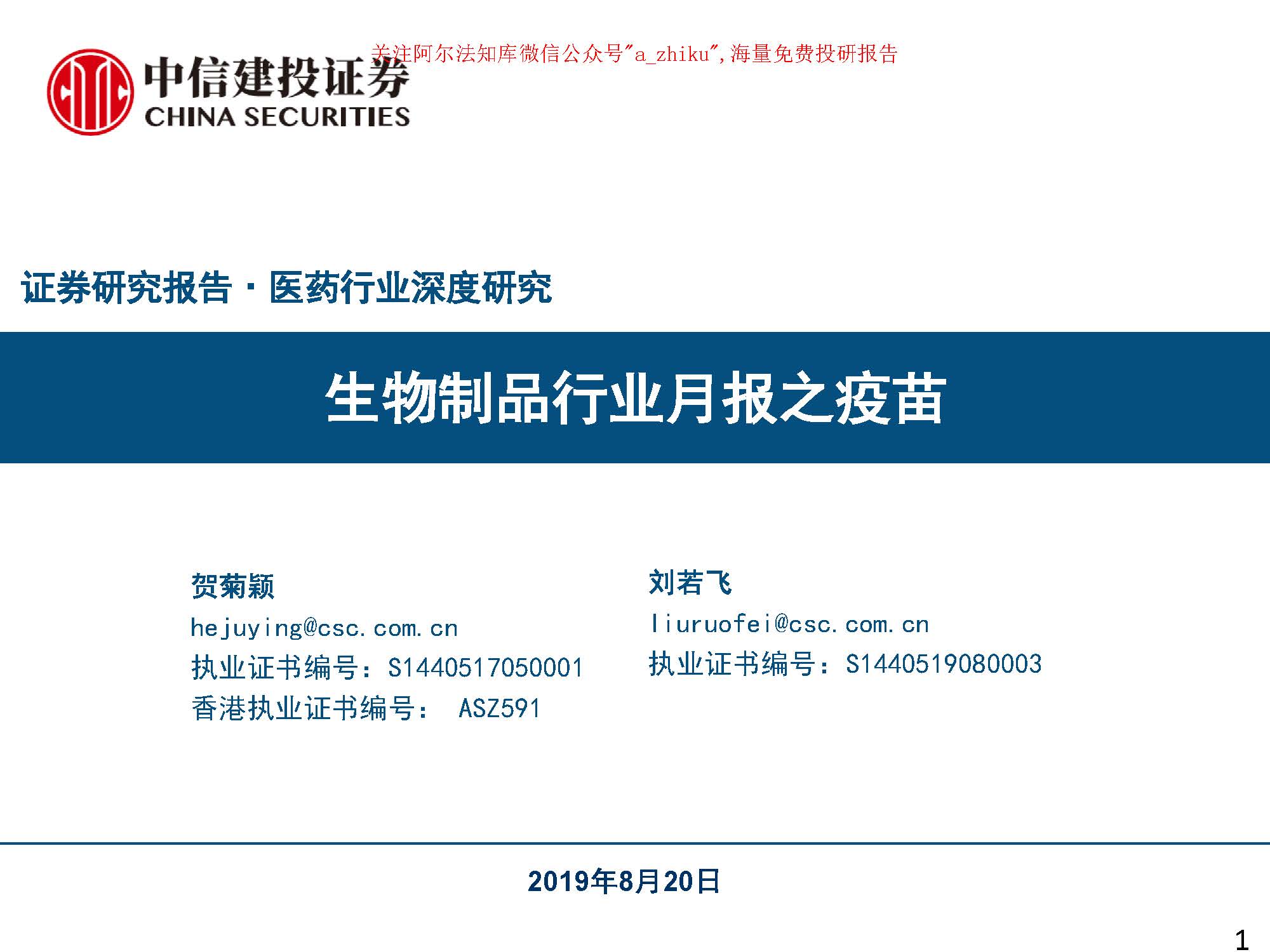 医药行业深度研究:生物制品行业月报之疫苗-20190820-中信建投-85页.pdf