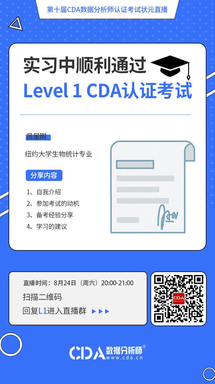 【学习笔记】【CDA状元直播】 实习中顺利通过CDA Level 1 考试。8月24日(周 ...