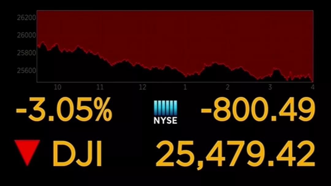 投资者恐慌,抛售股票转买债券,道指跌掉808点,跌幅近3.1%,S&P 500指数跌掉2.9%,纳指也血洗暴跌,是美股今年最糟糕一天。
