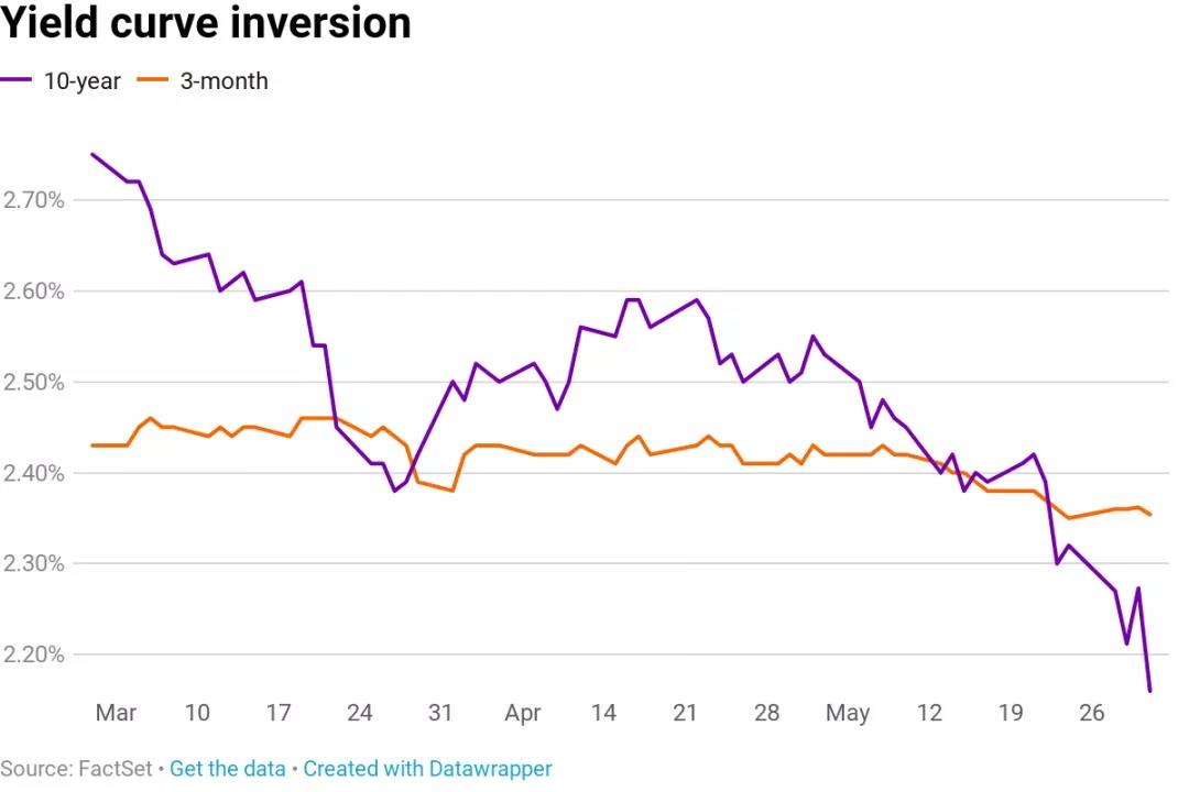 比起三月更让投资人恐慌的是,收益率曲线十多年来出现倒挂。
