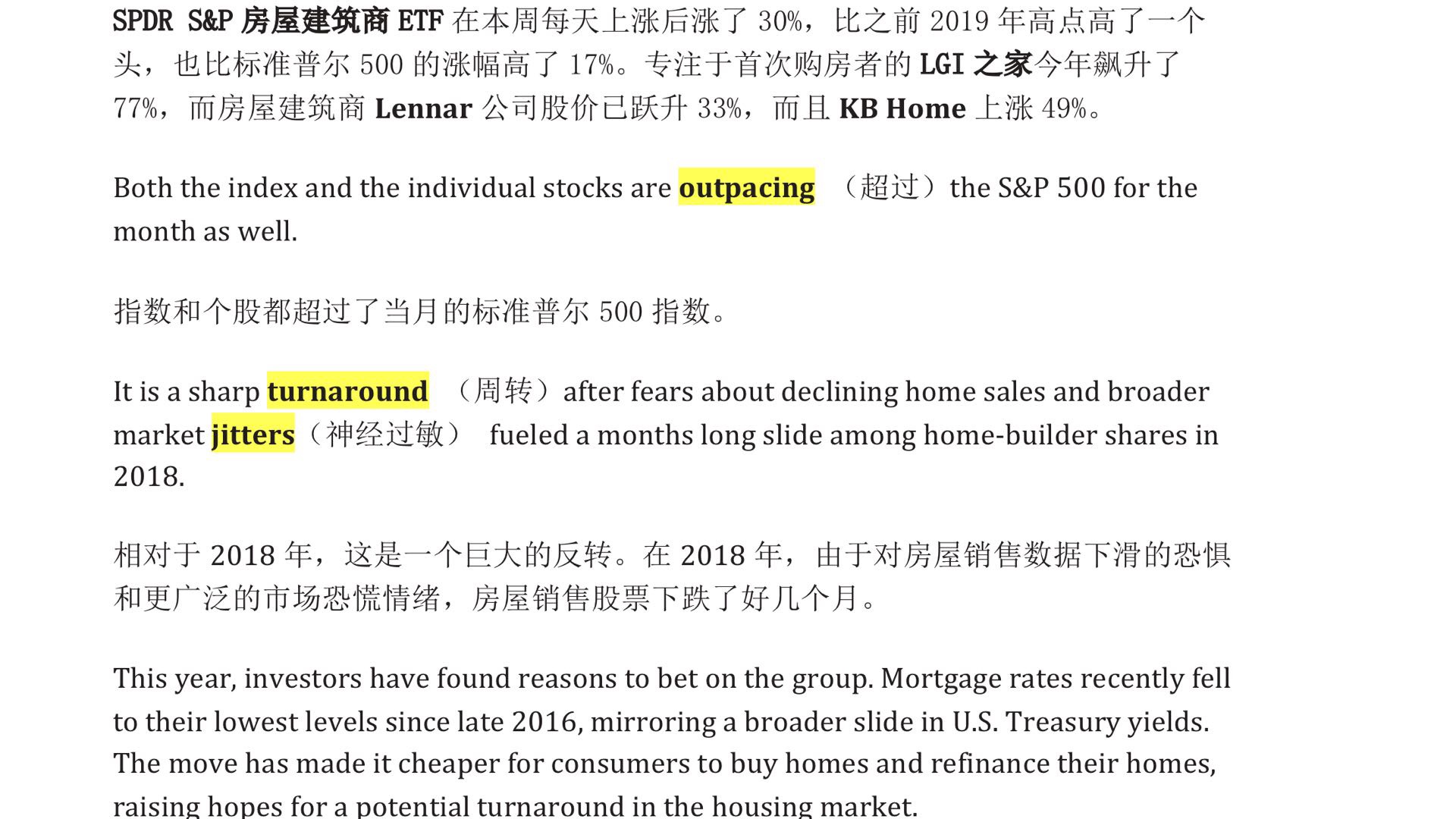 【学习笔记】Home Builders Reap(收获) Benefits of Lower Rates