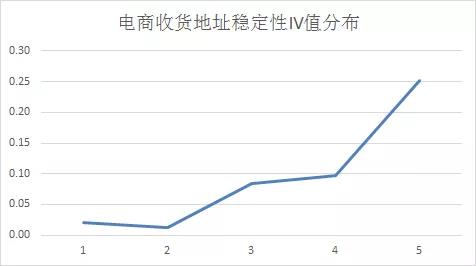 我们在计算完IV的指标后,需要观察变量分段区间之间是否有单调性,如果区间之间的分布呈现单调性,也说明变量比较符合业务逻辑,比如在测试某个数据源的时候,会画出各区间与IV之间走势的关系图:
