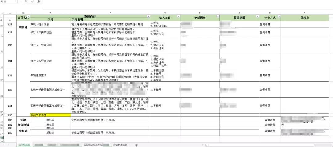 而我接触到某一家大型的集团公司里,他们对数据源的考虑就更全面了,基本是把所有能变量情况、输入条件、计费方式、风险点都作为考察的范围。