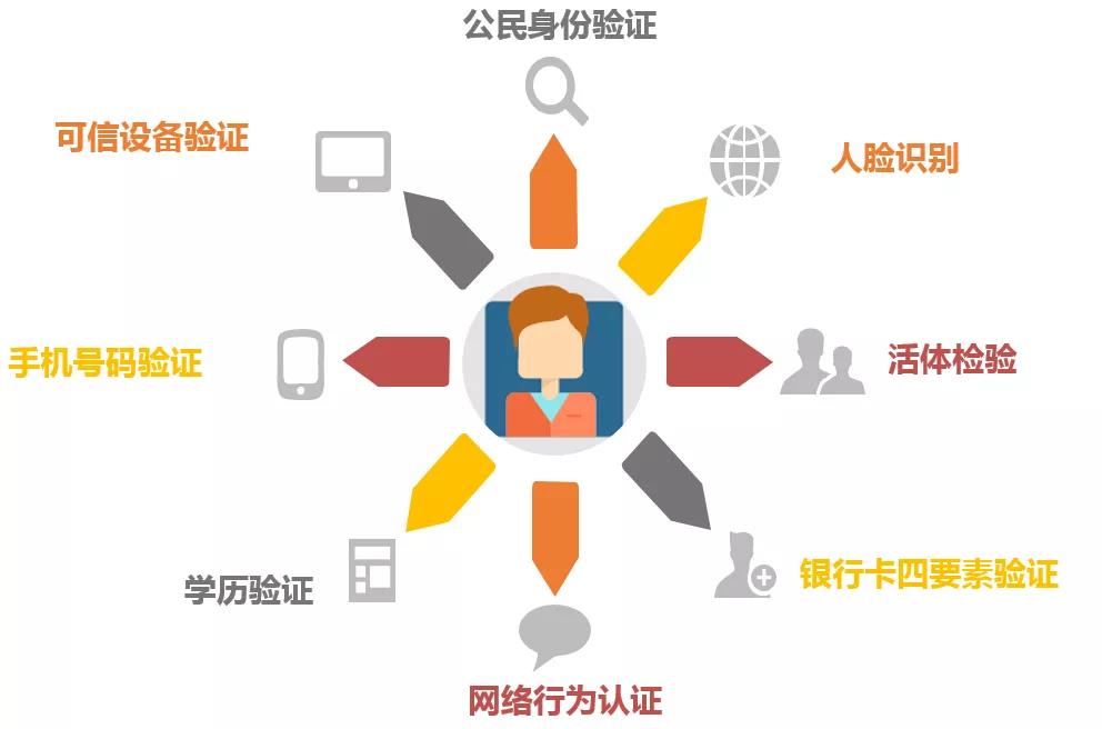 在身份确认这块,会使用身份验证 、活体检验、人脸识别 、银行卡四要素验证、手机号码验证 、学历验证。