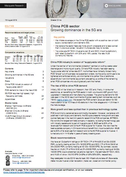 麦格理-中国PCB行业:在5G时代日益占据主导地位-20190816-72页
