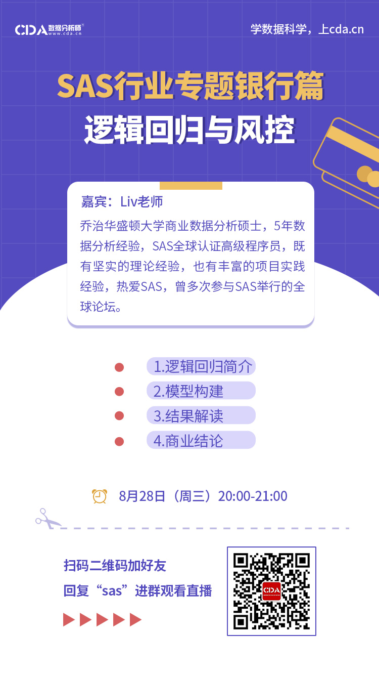 8月28日晚20:00【SAS行业应用——银行风控篇】第二讲直播!