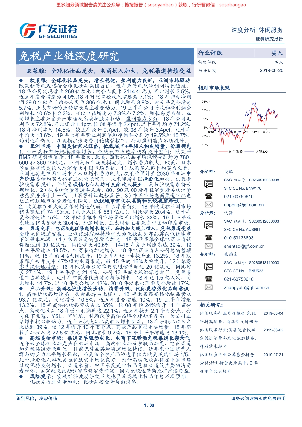 免税产业链深度研究:欧莱雅:全球化妆品龙头,电商投入加大,免税渠道持续受益-[搜搜