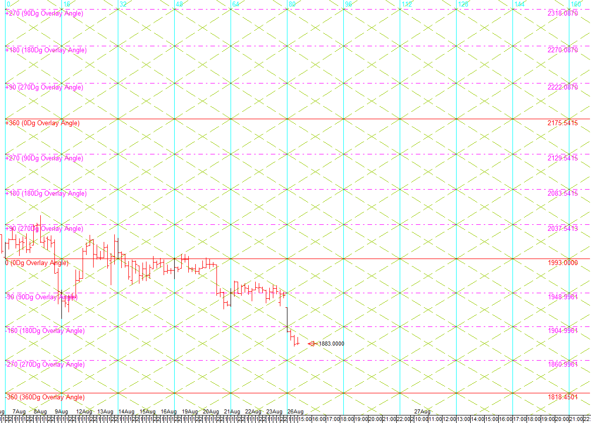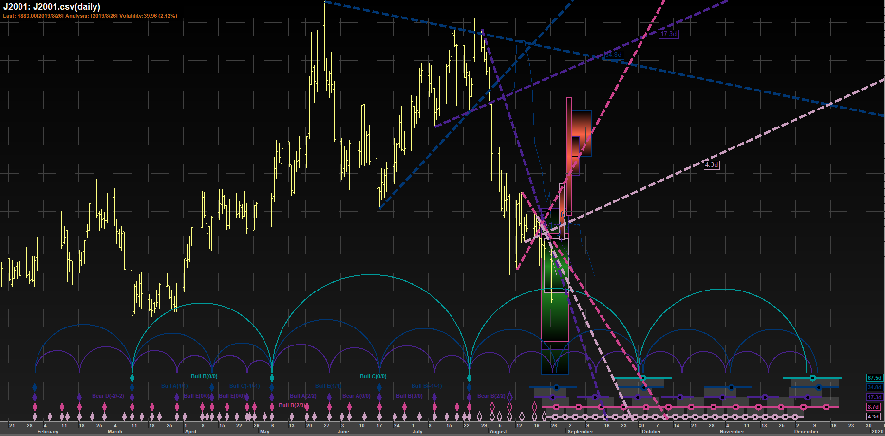 The first FLDpattern sequence (ref #0) projects a price movement DOWN to a target of 1891.59by about 2019/8/27.