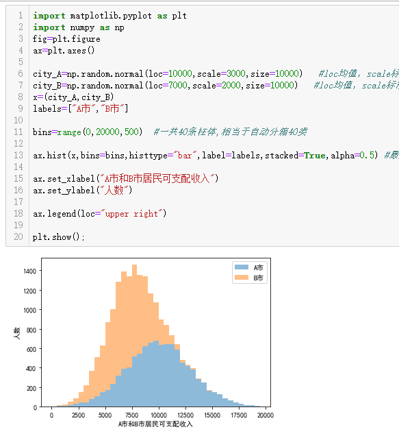 【学习笔记】用建立画布和轴域的方法绘制直方图和堆积直方图