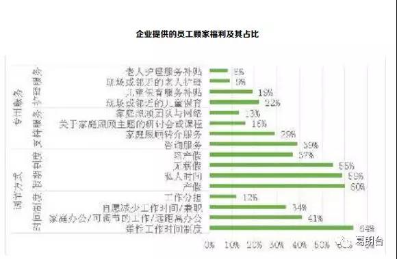 其实,不少企业已经设有支持员工照顾家庭的福利政策。根据调查,主要有专门服务和调节工作 两大类,具体内容以及采用了相关政策的企业占比如上图。