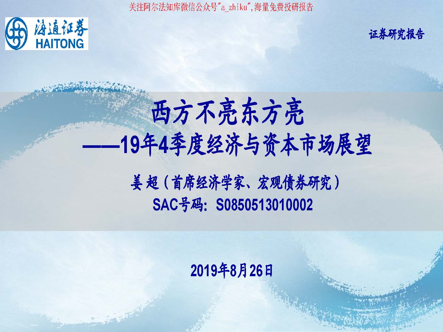 19年4季度经济与资本市场展望(PPT):西方不亮东方亮-20190826-海通证券-61页.pdf