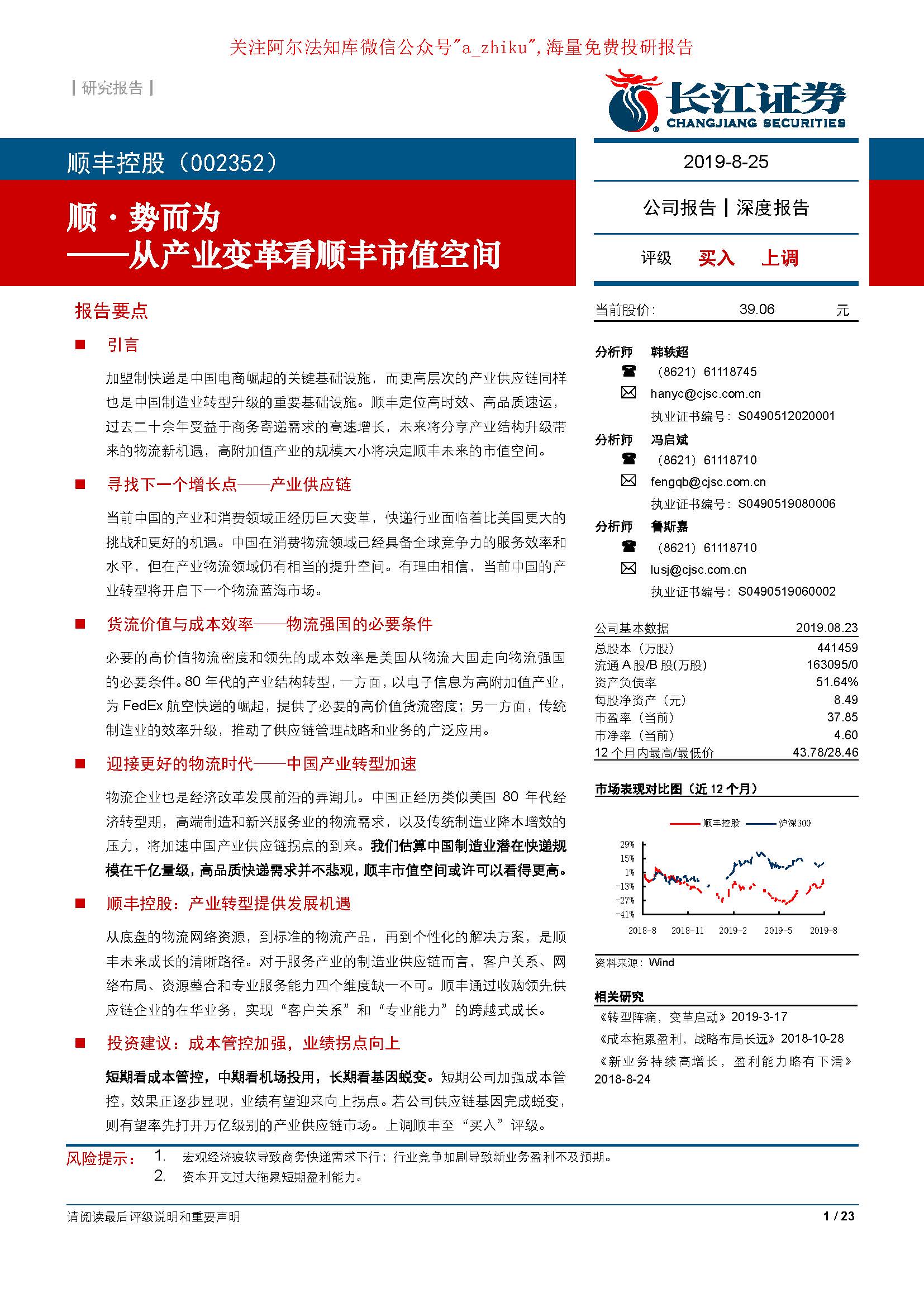 -顺丰控股-002352-顺·势而为~从产业变革看顺丰市值空间-20190825-长江证券23页.pdf