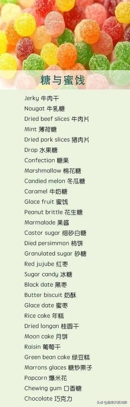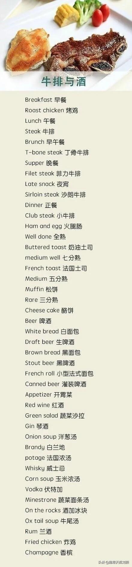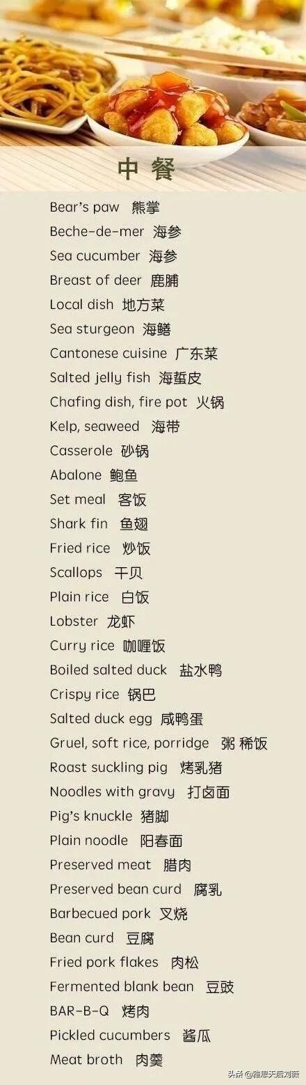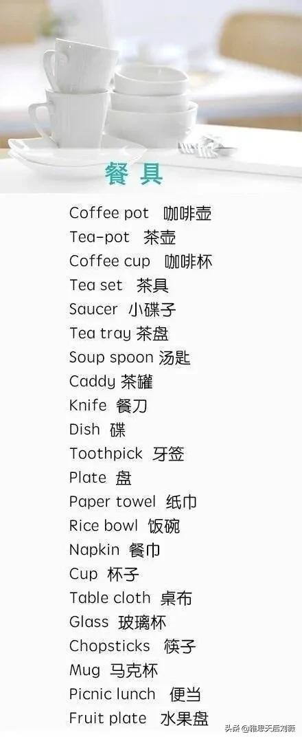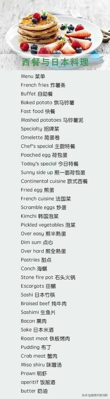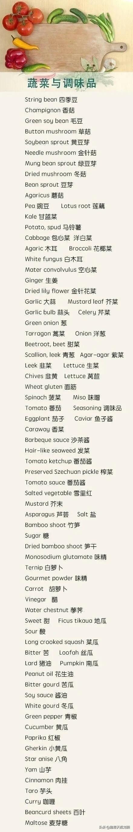 各类食品蔬果餐具英文表达