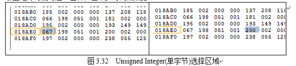 具体找到倒数第二行,如图3.32所示,鼠标点击067数字,发现右边选择Little Endian时,在4 bytes处的Unsigned(Signed) Integer处显示为20170307(具体结果如图3.33),太兴奋了,这不是传说是中日期吗?进一步移动鼠标,选择后面的200,可以看出,相同的地方出现了712,与通达信股票价格对应,发现这就是当天的开盘价7.12,唯一遗憾的就是扩大了100倍。也就是说,数据对应的是Little Endian方式,且字节数为4。