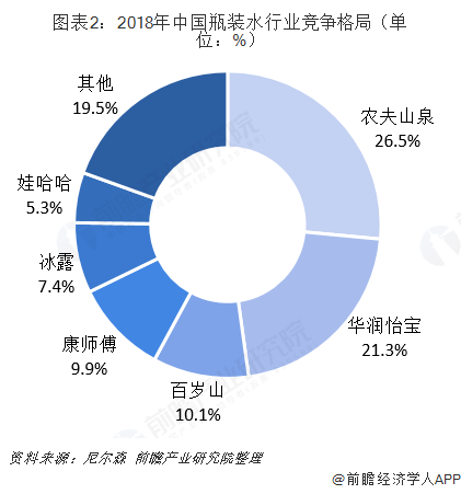具体来看,农夫山泉和华润怡宝的市占率略微领先,均在20%以上,分别达到26.5%和21.3%,其它四大品牌的占比均在10%以下。