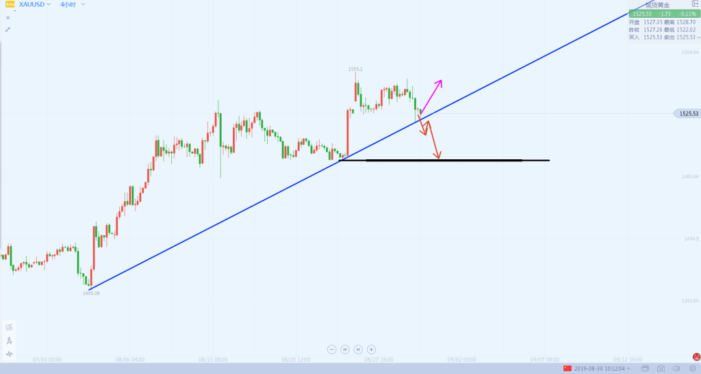 1:黄金刺破1529回撤1528-1527做多,损在1522,目标上看1550。