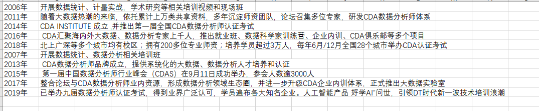 【学习笔记】8.30 简单爬虫练习2,爬下CDA官网上的发展历程并写入到Excel文件 ...