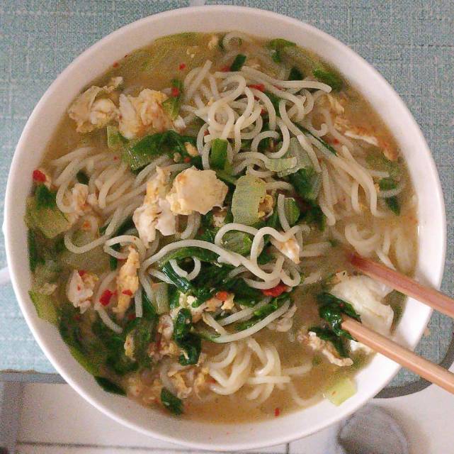 以前做的早餐,难吃难看难安,现在充分运用金融学里分散化的思想后,鸡蛋少许,小菜少许,葱花少许,辣椒少许,肉丝少许,最重要的面条少许,从此既不难吃也不难看了,更重要地,食材分散化也大大降低了食品安全隐患,吃得心安。