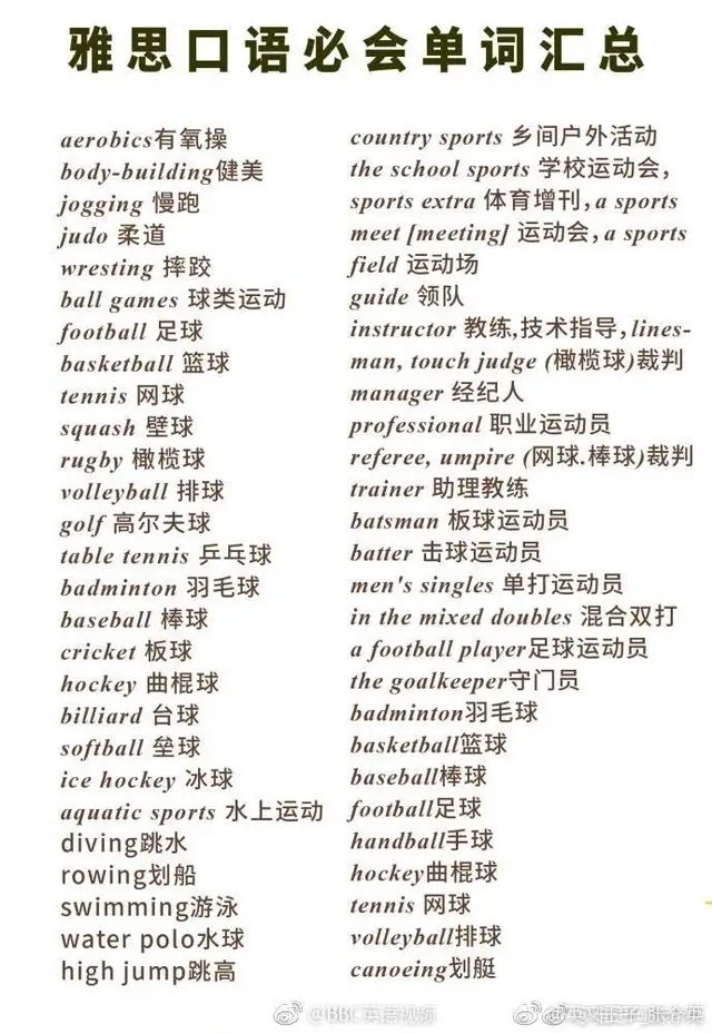 雅思口语必备词汇集锦