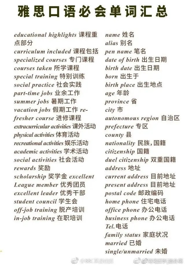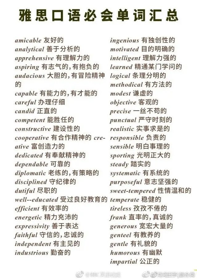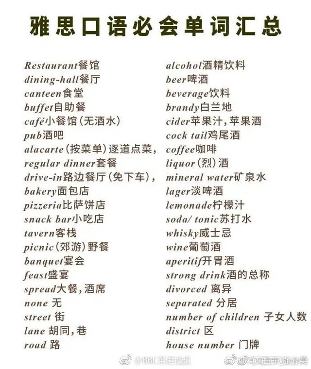 【学习笔记】雅思口语必备词汇集锦